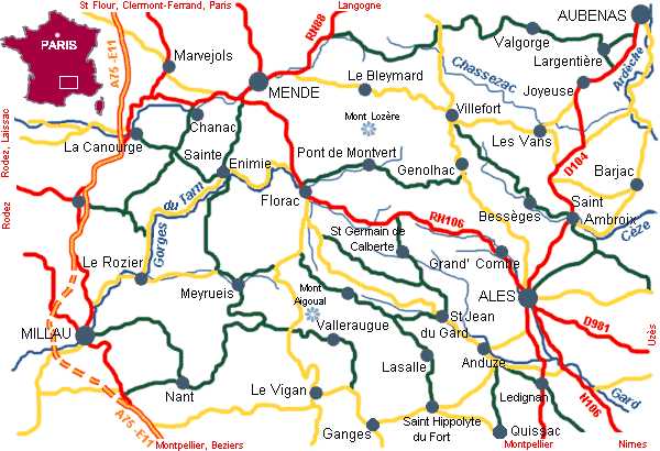 Background & PlanningDue to work schedules and family commitments in the summer, Bon and I decided (in spite of the contention between France and the US over Iraq policy) to hike in the Cévennes in the late spring. We chose the Cévennes as we thought the climate would be temperate and the trails not yet crowded in the late spring. Bon did extensive research with a general plan for a lower circuit starting in Anduze in the south, with the possibility of an upper circuit to the north. Our dilemma was that it seemed too difficult to do both in two weeks, but that was also the adventure! We knew whatever the plan, it would change once we got on the trail. |