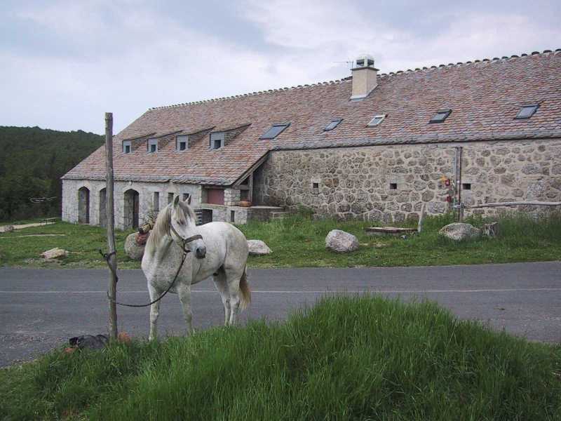 Soon we arrived at the ski area of le Mas de la Barque where there was a large parking lot adjacent to two stone buildings with horse pastures behind. We went in and found we had a private room with sink and facilities at the end of the hall. We arrived about 4:00 p.m. after about 17 kilometers.