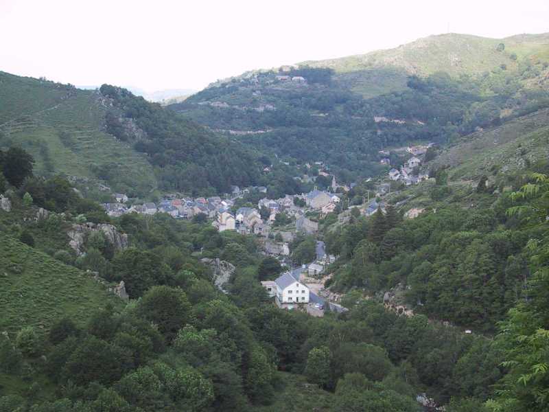 The day was overcast and a little cooler than previous days. We packed up and did errands. As the clanking bell in the bridge tower sounded 10:00 a.m., we set off mounting through the town retracing our steps of the day before. From a passer by we obtained directions to Villeneuve which was on our way to le Mas de la Barque, our destination. The road climbed the hill above the waterfalls that descended into le Pont-de-Montvert. We opted for the gradual climb of the road versus the trail which went over the hill and down into the next valley. It was very pleasant with a good view back to the village. As we came to the outskirts of Villeneuve, there was a field filled with narcissi and a yellow ranunculus for the first time. There were also two blooming arnica - which were a cross between a bright yellow daisy and a marigold. Villeneuve was a attractive stone village. A woman who happened by chatted with us somewhat surprised that we were Americans.