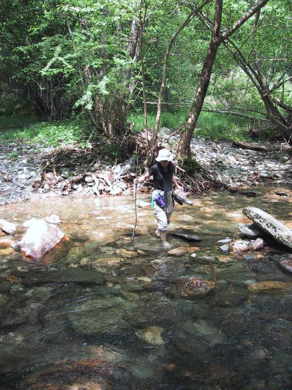 Unfortunately the trail was very poorly marked and we could not find the point at which it descended to the river and a small bridge. Finally, I picked a point and we descended steeply to a dirt road that led to the bridge. It was now about one thirty and we decided to picnic with our feet in the very clear stream.