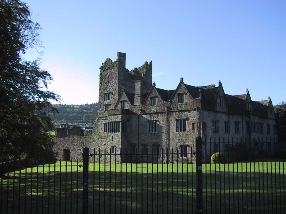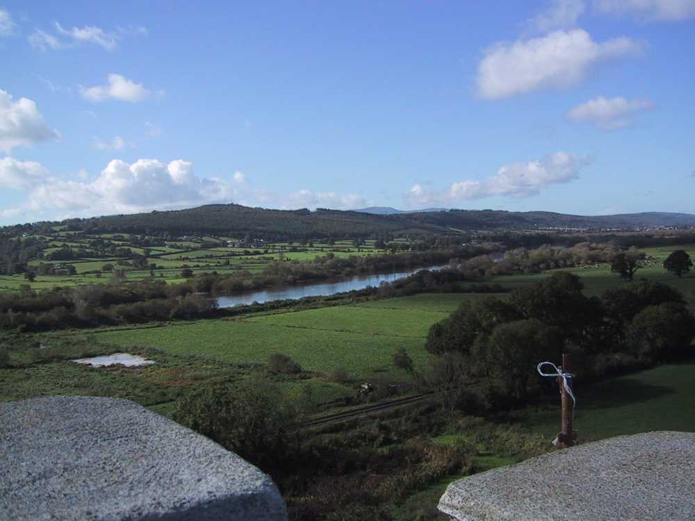 We took the road to Tibberaghny a small road which crossed from Tipperary into Kilkenny and leading to a house attached to a castle covered with scaffolding and under construction. I walked in the drive and was met by Louie Downey, the owner. He said that we were welcome to look at the ruins of the old monastery below the castle. As we talked to him and commented on his energy in rebuilding the castle tower, he volunteered that we could climb to the top of the castle. We climbed the narrow circular stone stairway to the top which commanded a view of the Suir River Valley. The black and orange flag flying from the turrets, we were later told by Louie, is the Kilkenny flag. There was an all-Ireland hurling championship between Kilkenny and Tipperary, and he liked to fly the Kilkenny flag so that all Tipperary could see it.
