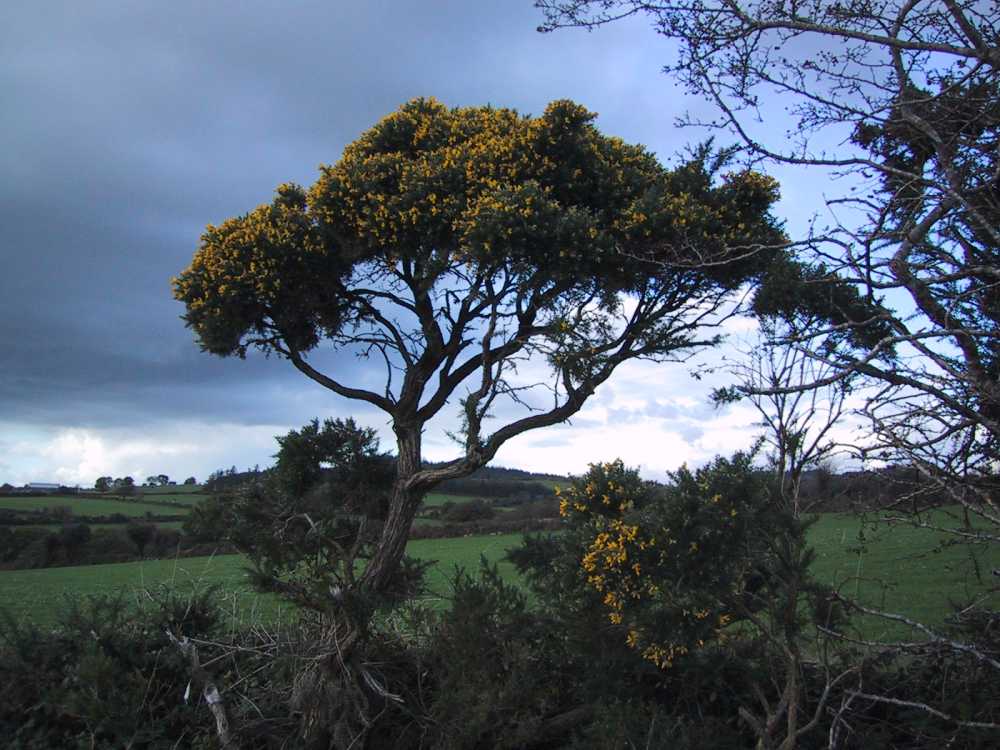 We walked back through the town to the old bridge and along the river to the castle where Ann Boleyn was said to have been born. Then we headed out along Route 24 - a busy road - until it turned off onto a country road at a sports club (named for Sean Kelly, a well known cyclist from Carrick). We hiked along a road and over a fast flowing creek and uphill, picking some blackberries that grew in the hedgerows. Eventually we found that the road had changed from our map and we had gone about a half-mile out of our way. We backtracked along Route 24.