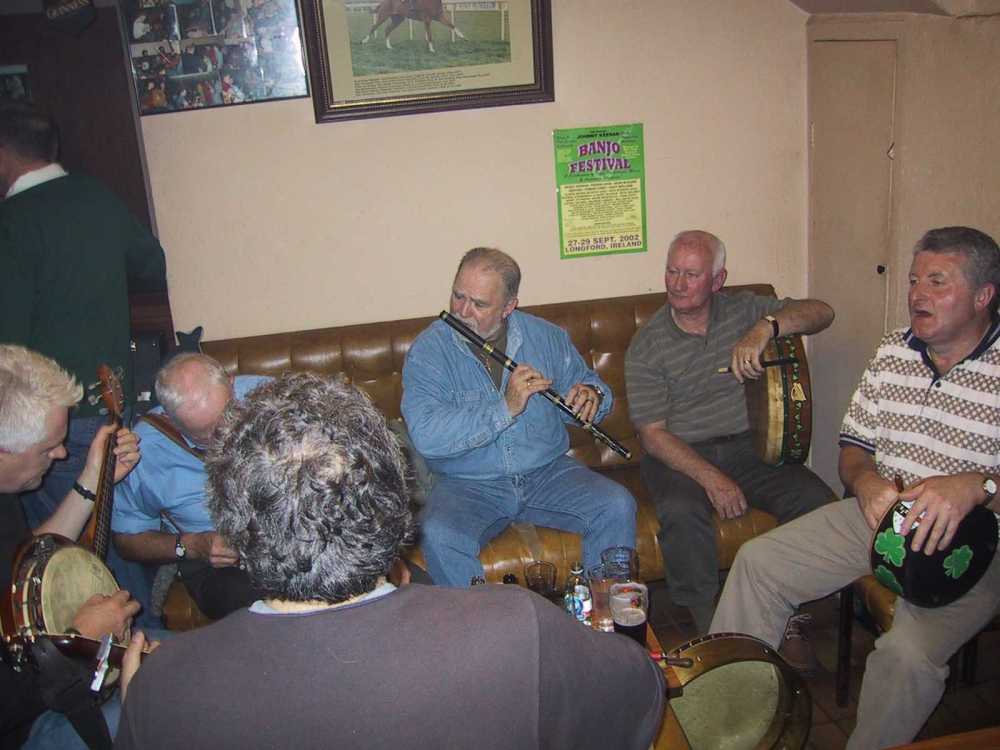 Afterwards, Bon and I walked down to Murphy's pub. The musicians and the rest of the town soon began arriving. It was a small space and an older fellow, Thomas Delahunty (Main Street, Mullinavat) sat down next to Bon. We understood very little of his conversation. He gave us a chocolate and later gave Bon a gold heart. I talked a little with the chap next to me who was not easy to understand either. The music was wonderful with a concert flute, a guitar, a banjo, an accordion and one, and sometimes two, drums called bodhran which are played with two pieces of wood called bones. We stayed until a little after 11:00 p.m. walking up a quiet street and back to our B&B.