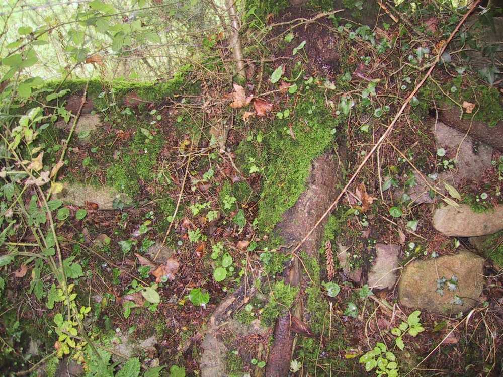 We proceeded uphill into the Derrylacky evergreen woods. As in Maine, the forest floor was covered with moss. After a long gradual climb we descended to a road turning right at a radio tower which marked the continuation of the trail. Here we saw a little brown bird with a rufus patch over his eyes, beak and throat which sang a beautiful trill of notes from the tops of young spruce trees.