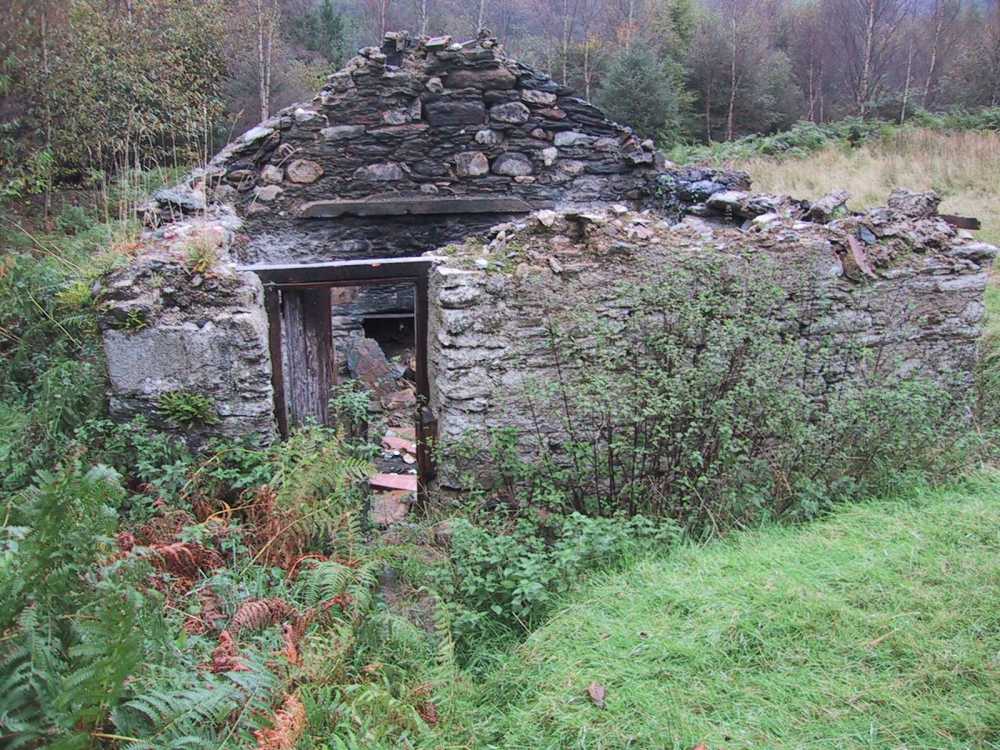 We then passed a large stone ruin which had been an old English barracks. The Irish had fought the English successfully in these hills and to counter this, the English built a road and a series of barracks which were little used. The old barracks had a high wall around it with houses built at the rear edge next to the road.