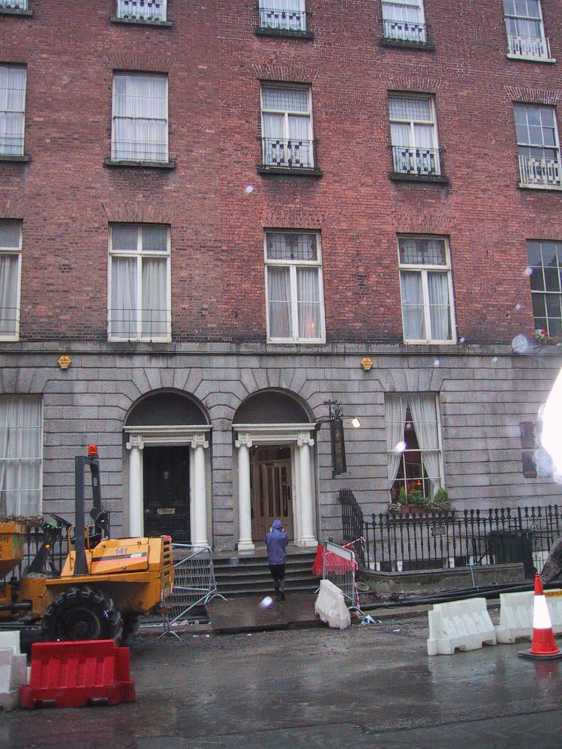 We arrived in Dublin on the west side of Stephens Green and walked the south side of the green to Leeson Street. A woman on the street I asked about B&Bs went out of her way to be helpful. (Everyone in Ireland is friendly and helpful.) We did not see one B&B, but tried a couple of hotels one's rate was 250! We were directed back to the street just south of where we had arrived, finding the Hotel Albany had one last room (apparently there was an Australian Ireland football game Aussy rules which was drawing people to the city). The room, on the fourth floor, was comfortable but chilly and we took it ( 130 with breakfast). We relaxed and I wrote on the bed comfortably under a blanket.