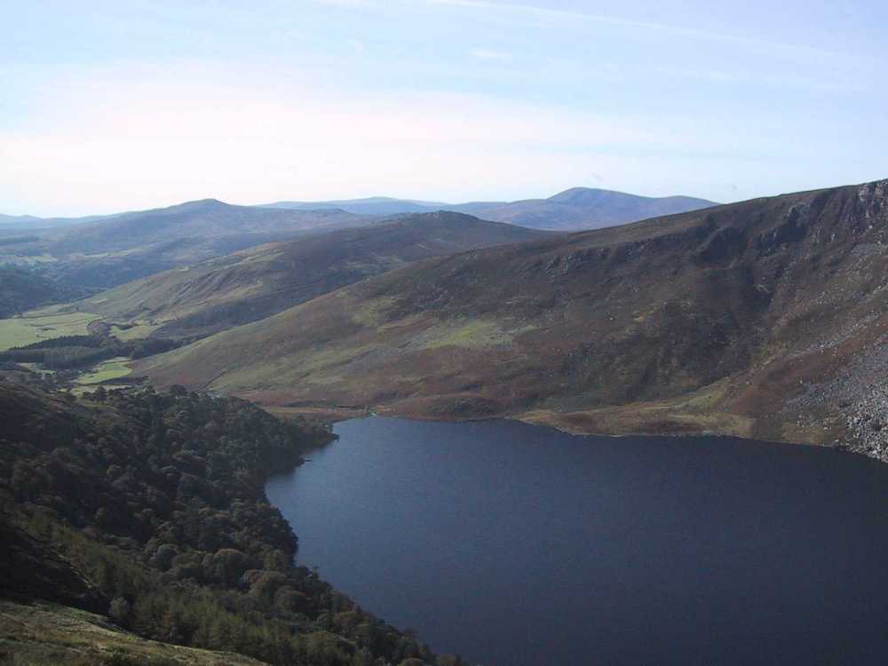 As we joined the Wicklow, the vista to the north opened and we saw the mountains for miles with Loch Tay below to the south. We could see where we had traveled last few days. The loch was beautiful with a sandy beach at the north end. A mansion of the Guinness family was nestled in trees on a green stretch of lawn above the beach. Bon and I sat here and took in the view as several people passed. (Up to this point on the entire trip we had seen only one person hiking; here, closer to Dublin, many were day hiking.)