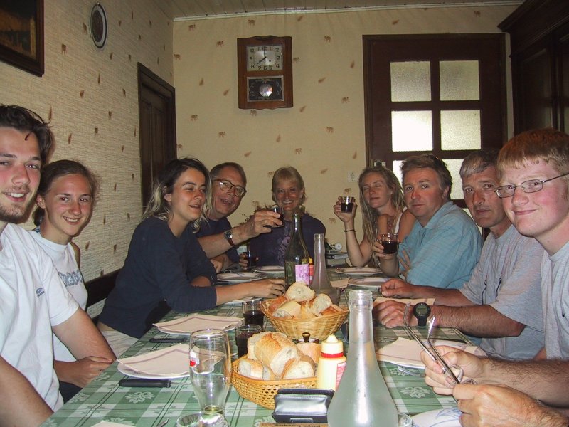 Later the young Spanish man addressed me down the table saying that he'd learned from Alan that I wanted the recipe for gateau Basque. He said that this was a secret recipe that was passed from generation to generation and that they could think of no condition upon which they would want the recipe released in Chicago to show up at McDonalds! We also talked about easing our travails on the trail by having wine in the backpack integrated water systems with mouth pieces and perhaps having two mouth pieces - one rouge and the other blanc.