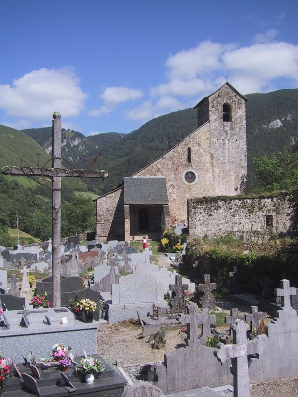 Then - as Alan said later - there was a long hot drag for one hour up the road passing some old farmhouses (one dated 1771) but otherwise uninteresting walking until we reached an eleventh century church and the gîte d'étape Sainte-Engrâce. We arrived at 5:05 p.m. - a long walk. As we were the last to arrive and our companions were all sitting around tables outside the gîte enjoying a beer, we got a round of applause and a cheer as we slogged in.