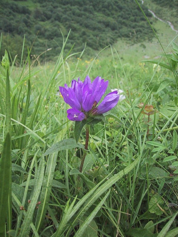 The trail now descended through pasture land and it was routed around some kind of pen which had been muddied by sheep or cows. It went along a stream and to the right of a stone hut soon after which it crossed the stream and climbed up into a cow pasture. One cow moved on as I came through but the rest just stared at me in their passive way. The next field had some mares and their colts, one of which galloped along side of its trotting mother out of our way.